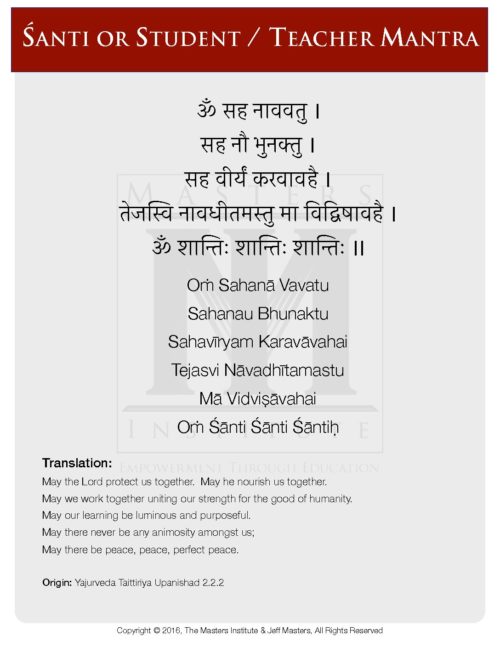 The practice of mantra begins by familiarizing yourself with the Sanskrit alphabet its pronunciation. By reciting the alphabet, a practitioner begins to become aware of the basic sanskrit sounds and condition the muscles of the jaw, neck and mouth to accurately approximate gutteral, palatal, cerebral and dental pronunciations.