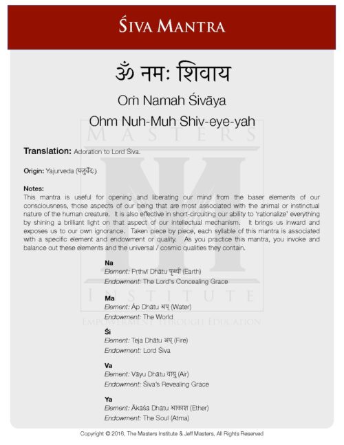 Click on each mantra below to view the study sheet and click play under each mantra to practice recitation.